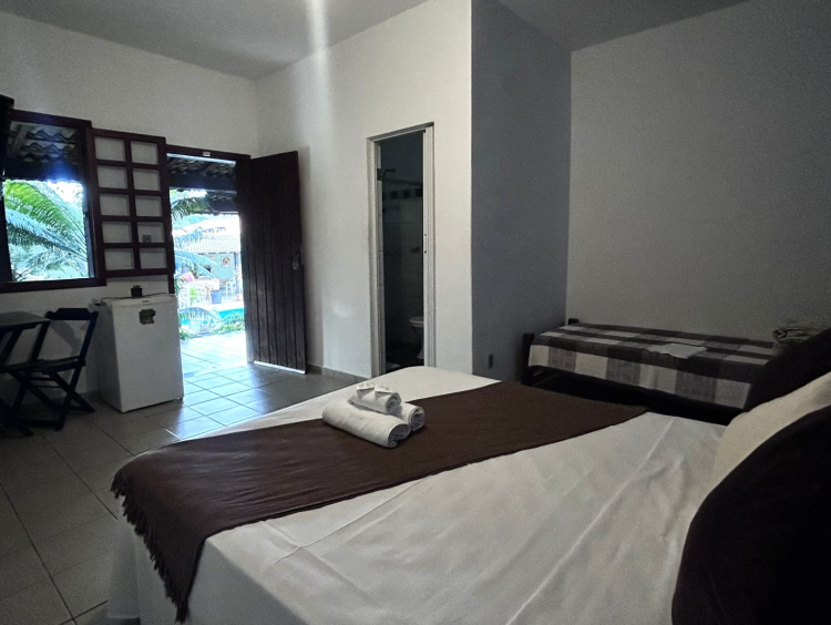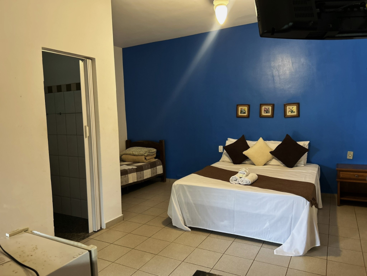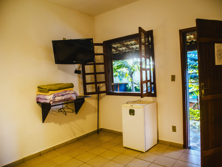 Este aconchegante apartamento se encontra no primeiro andar da pousada, possui cama box, tv de LED, ventilador de teto, varanda com rede, frigobar e banheiro privativo. Janelas com vista para jardins e piscina. Para hospedagem de apenas uma pessoa, sugerimos entrar em contato conosco.